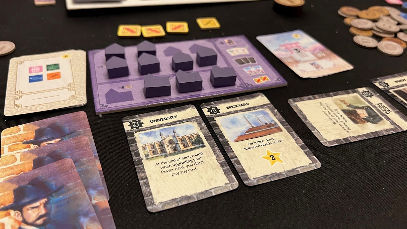 Technology cards, in particular, can shape each player's approach to the game. In one game, I was able to use the Postal System tech card to play a Power Card out of order, allowing me to swoop in and claim a location at maximum power. In another, the University gave me knowledge at the end of each round, so I didn't have to pay money to upgrade a power card, letting me put the resources somewhere else. These technology cards can shift your path throughout the game.