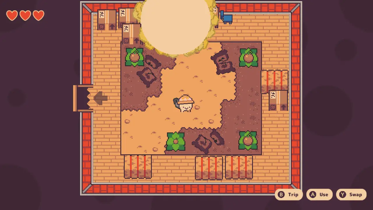 Combat isn’t too advanced, with your main attack being a sword (later upgraded to a shovel) that has decent range and can be controlled with a button press or the right analog stick. However, I thought that the other tools you acquired were rather innovative. You get a watering can early in the game which can water things like bombs which you can push into enemies or boxes, and even portals that function like… Portal portals, which results in some rather smart block puzzles. The game gives you a lot with a little, and while most boss battles boil down to “attack when you find an opening”, there’s enough with the other mechanics that make the battles feel fresh.