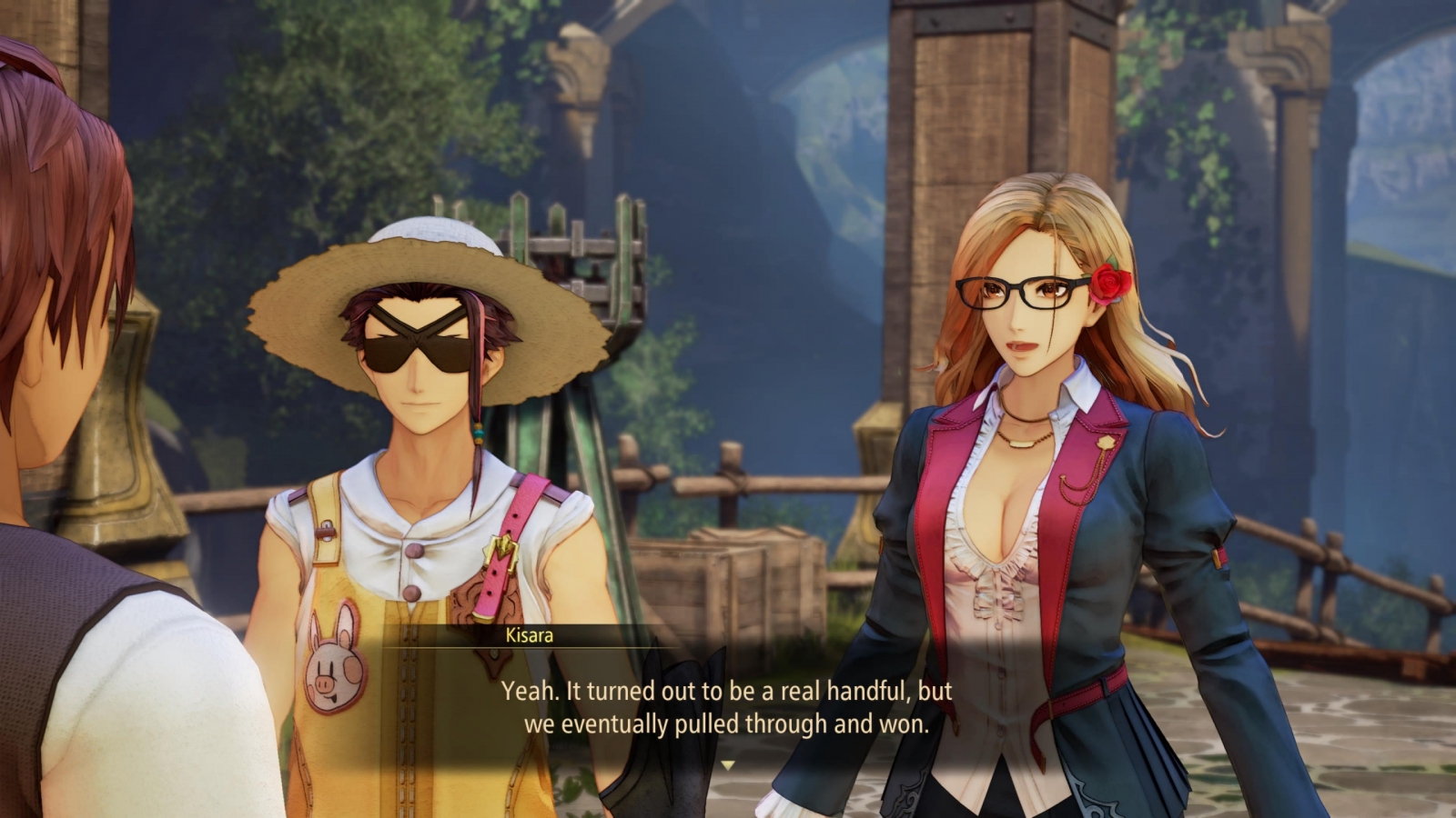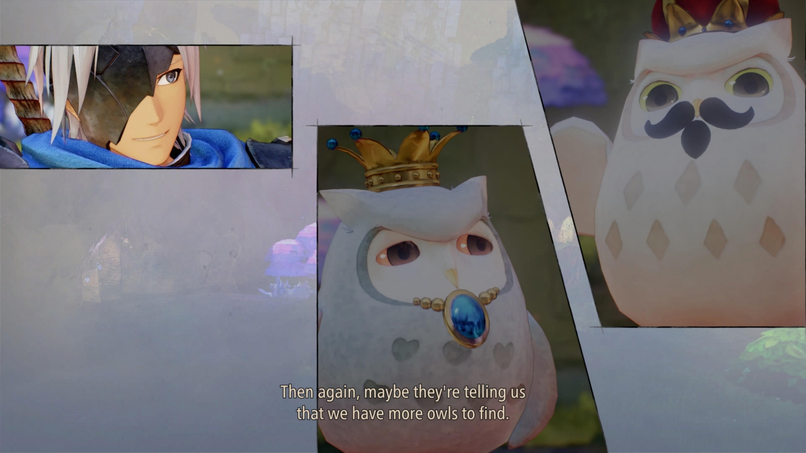 Circling back to chatting with your party, the Tales of series is known for Skits – small, comic book-like cutscenes in which characters will talk about… whatever. It could be whatever just happened in the story, what they ate for dinner last night, or a Zeugle that looks particularly cute. They’re fully voiced and pop up very frequently even when just walking around. Instead of the 2D portraits of the past, Skits in Arise use the ingame models for more dynamic panels. While I like being able to see outfits I’ve put together from pieces given to you by adorable owls you find in the field, the animations look incredibly stiff compared to normal cutscenes. So much so that I think they would actually look better if they weren’t ever so slightly animated.