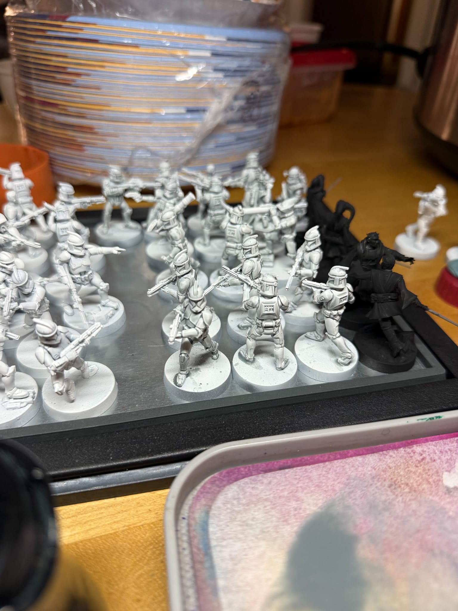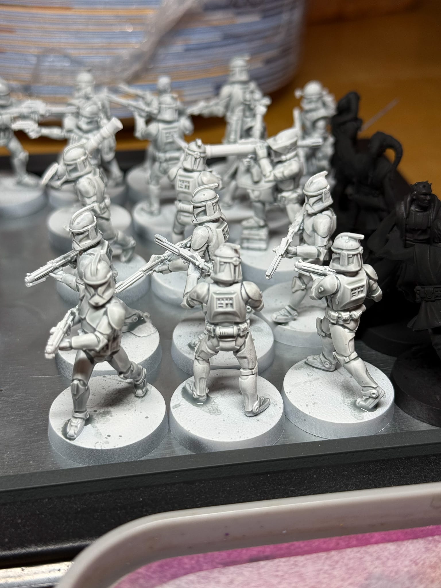 I've never been the painter to have a tv show or a movie on, as my attention is usually 100% focused on the model. However, when you have 30+ clone troopers, you need something to help pass the time. In order to build and paint this army, I did so over months, typically in my normal routine, which also consisted of putting together two display pieces for Adepticon, writing articles for GamingTrend, and the occasional "I want to paint something else" piece.