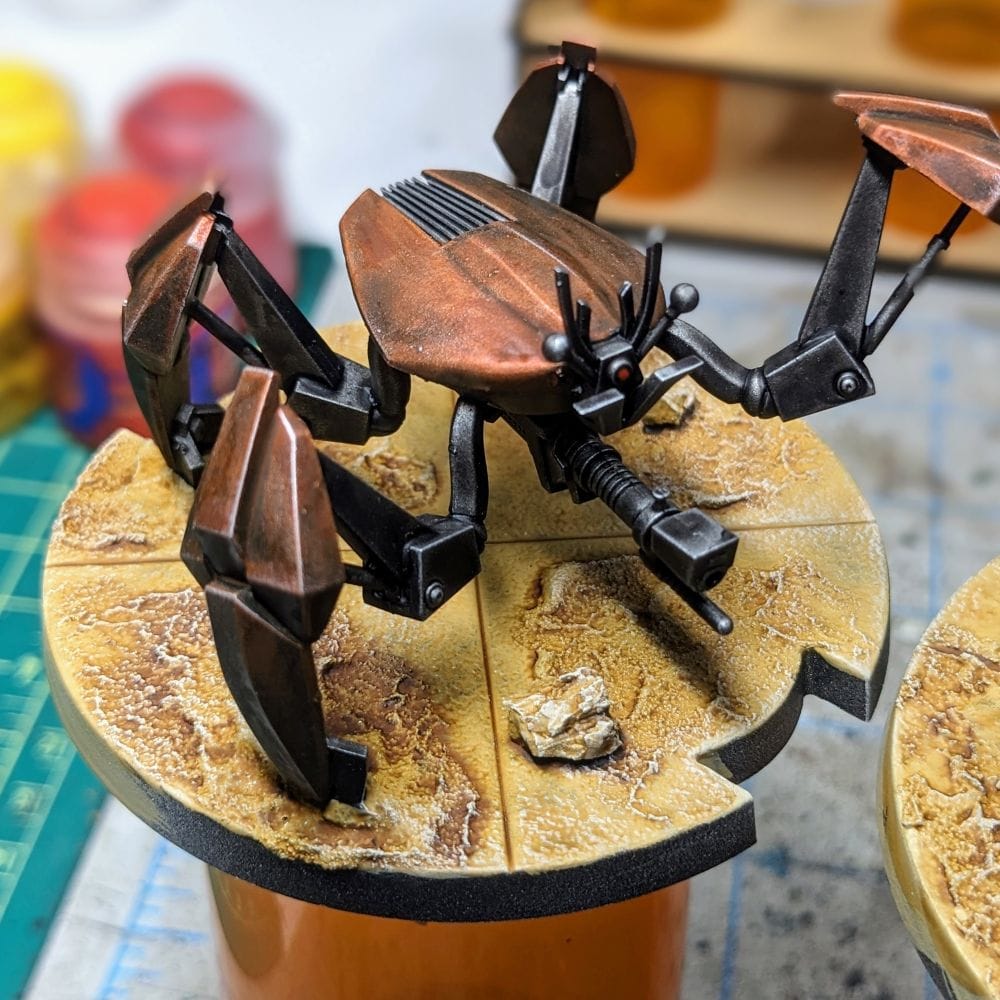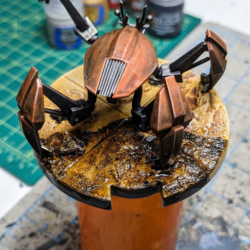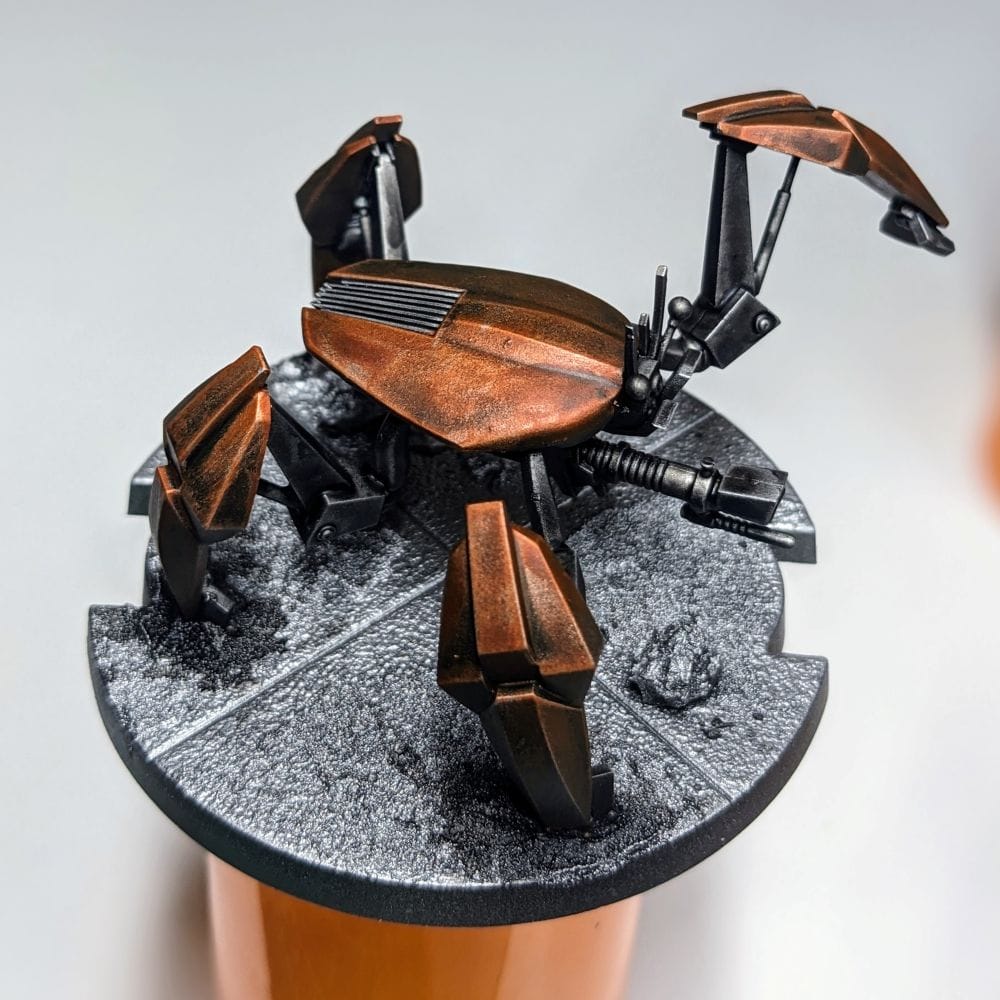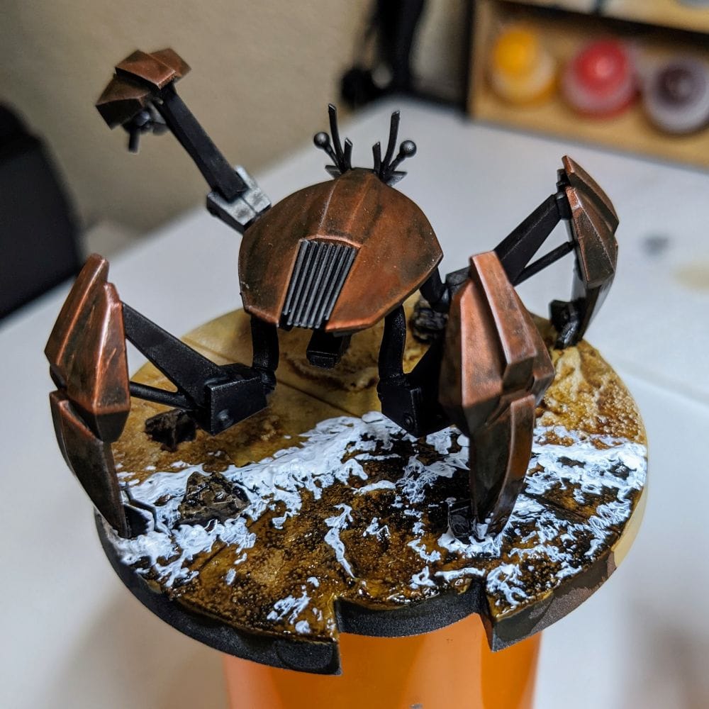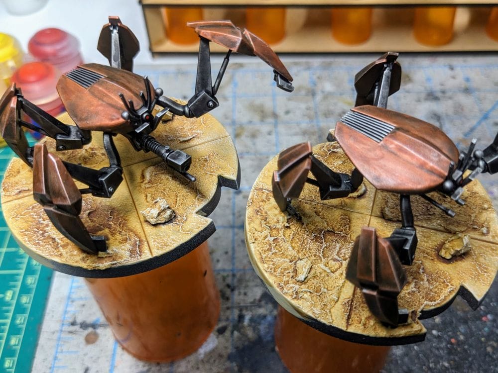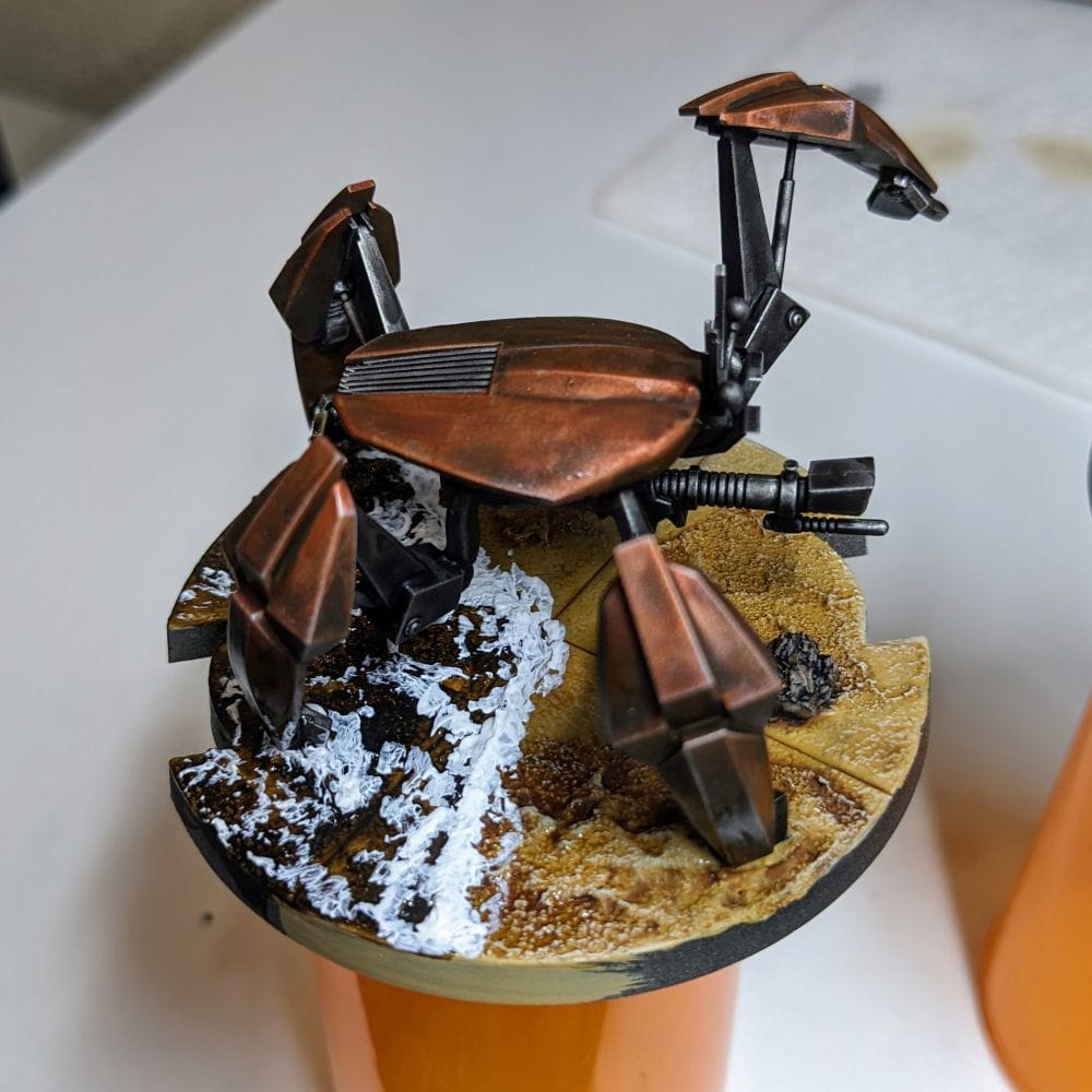 These Crab Droids were actually a lot of fun to paint, simply because it takes so little effort to make them look good and ready for the tabletop. I actually think I spent more time water for washes, contrasts, and water effects to dry than I spent actually painting the model. I was very happy with how the basing came out, and am excited to see them in battle!
