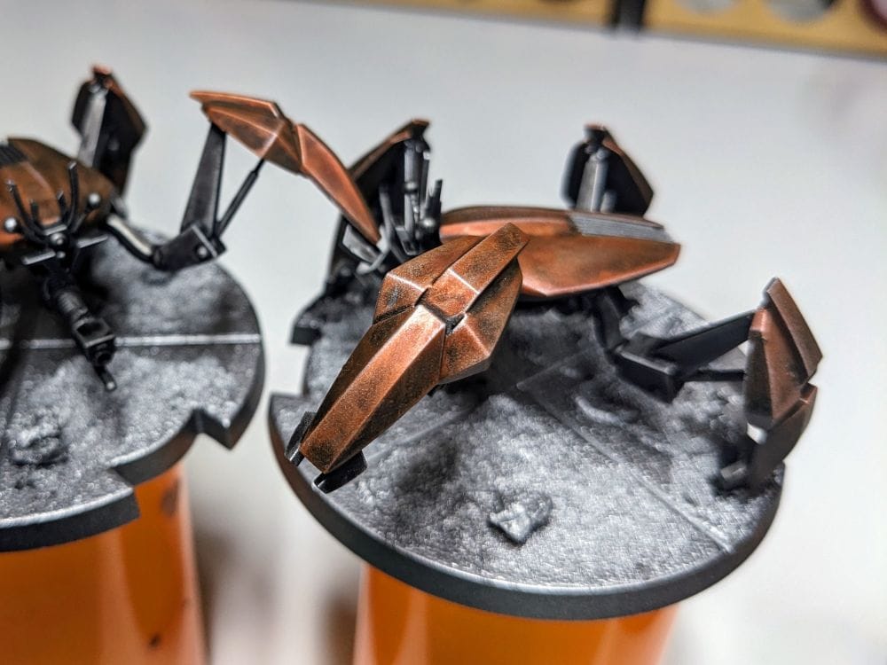 After the contrast paint has dried, I did one more pass of Necron Compound, focusing on the orange metal and specifically on the angles and edges.
