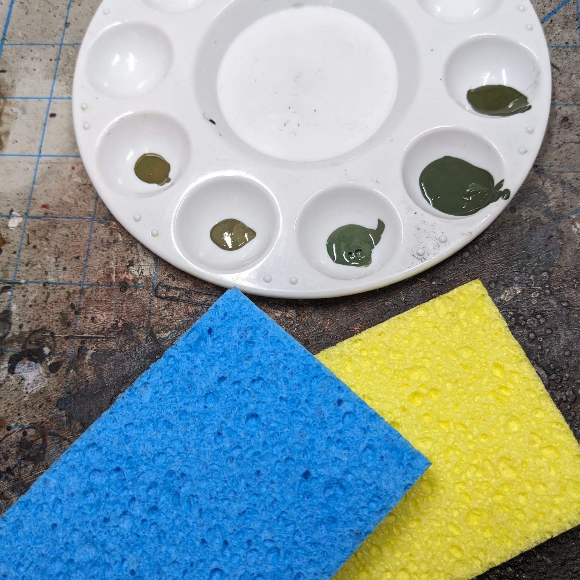 In addition to the crummy brushes, I used sponges to dab and apply the various colors for the cloaks and armor, to help give it a rugged, used feel. The paint doesn't cover everything, leaving the black primer poking through. A small piece of sponge (washed heavily to remove production greases and oils) works great for this technique.