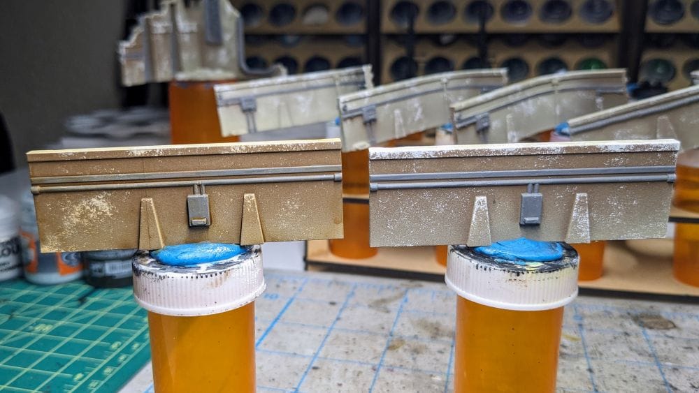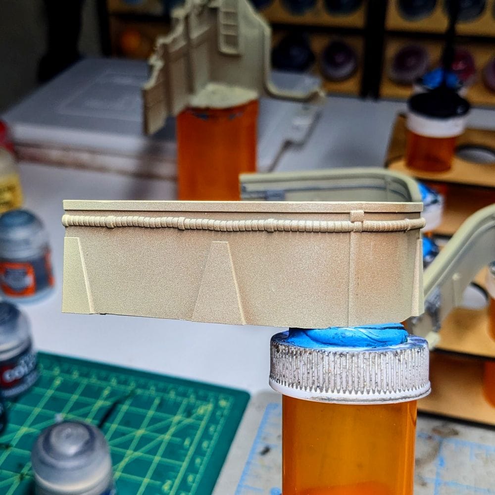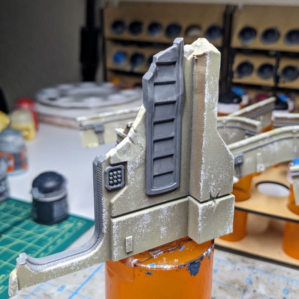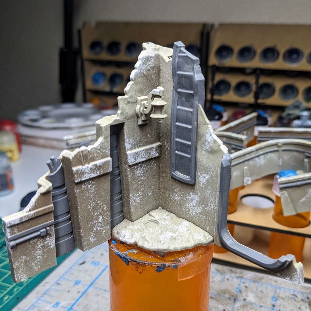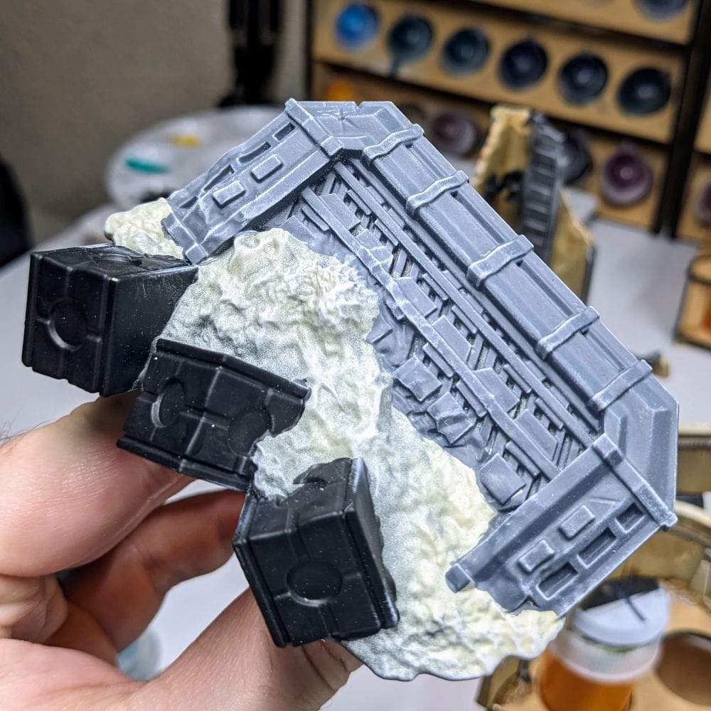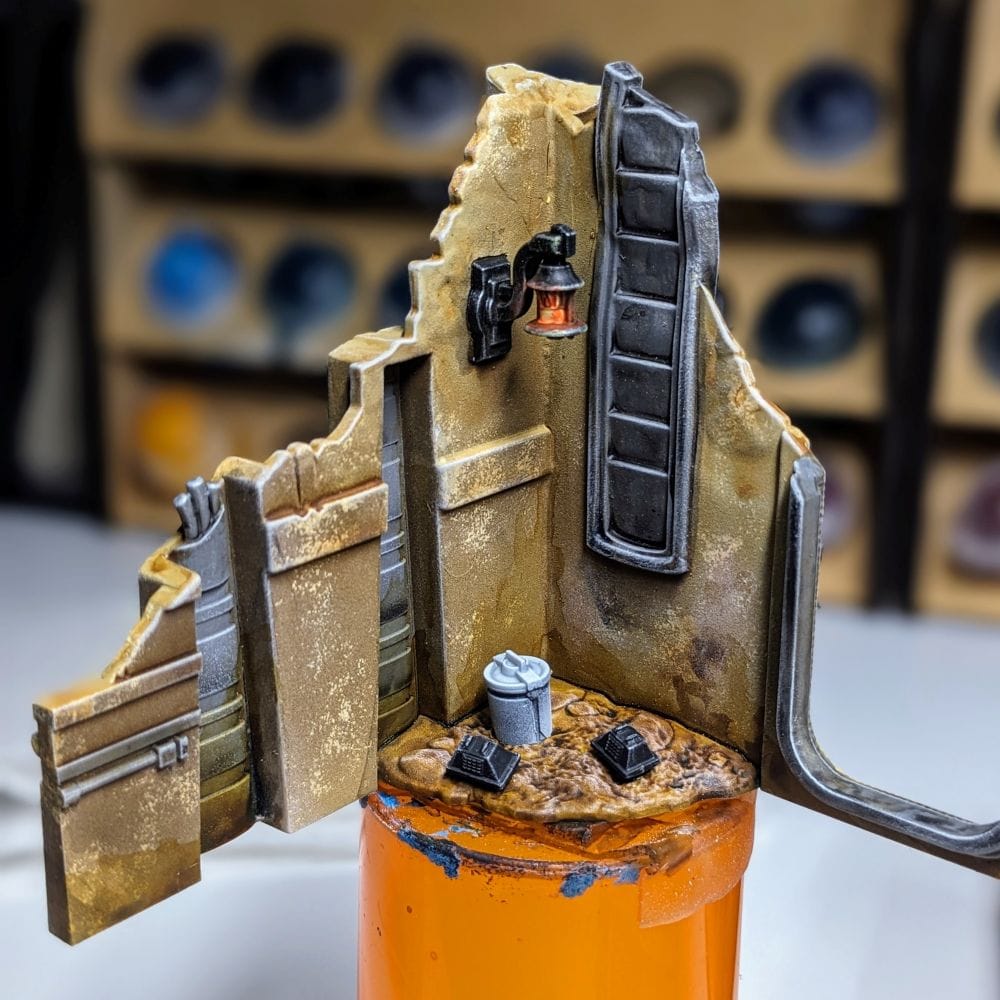 NOTE: I was not being very precise in coverage of the shade for two reasons: it’s destroyed terrain so it shouldn’t be clean, and also the two different shades blend together to help make the walls and metal bits seem more cohesive.