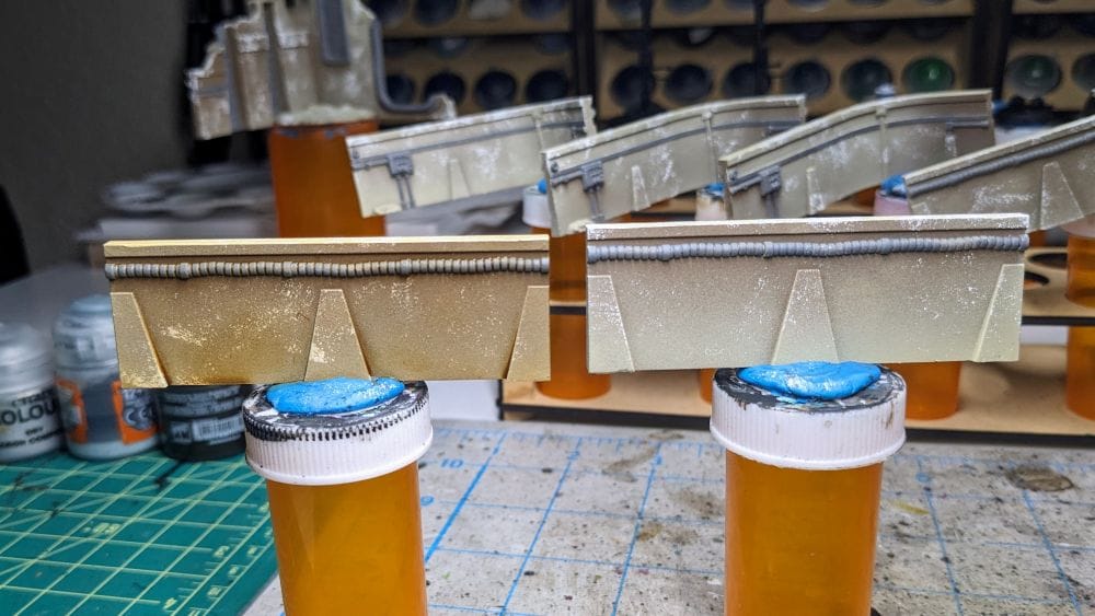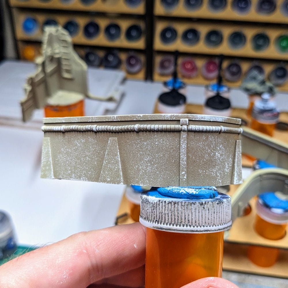 Once I was satisfied with the style, I went back through and painted each pipe and electrical box using Dawnstone. Since this is terrain, I didn’t stress about making sure it was perfect and just did my best to cover where I needed to.