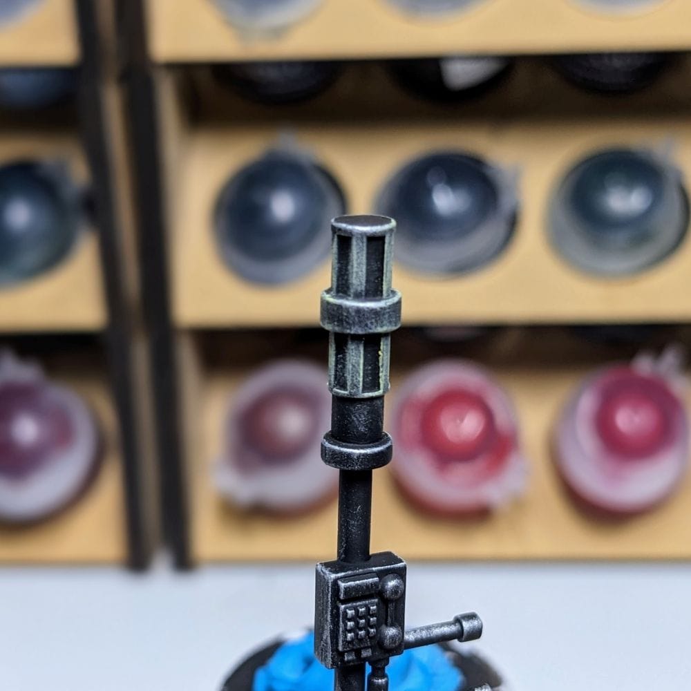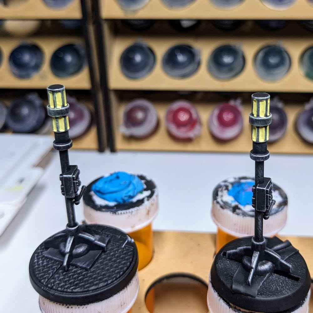 To make things very easy, I chose to make the power poles a black metal. Simply, I primed black, I drybrushed Necron Compound over the top.