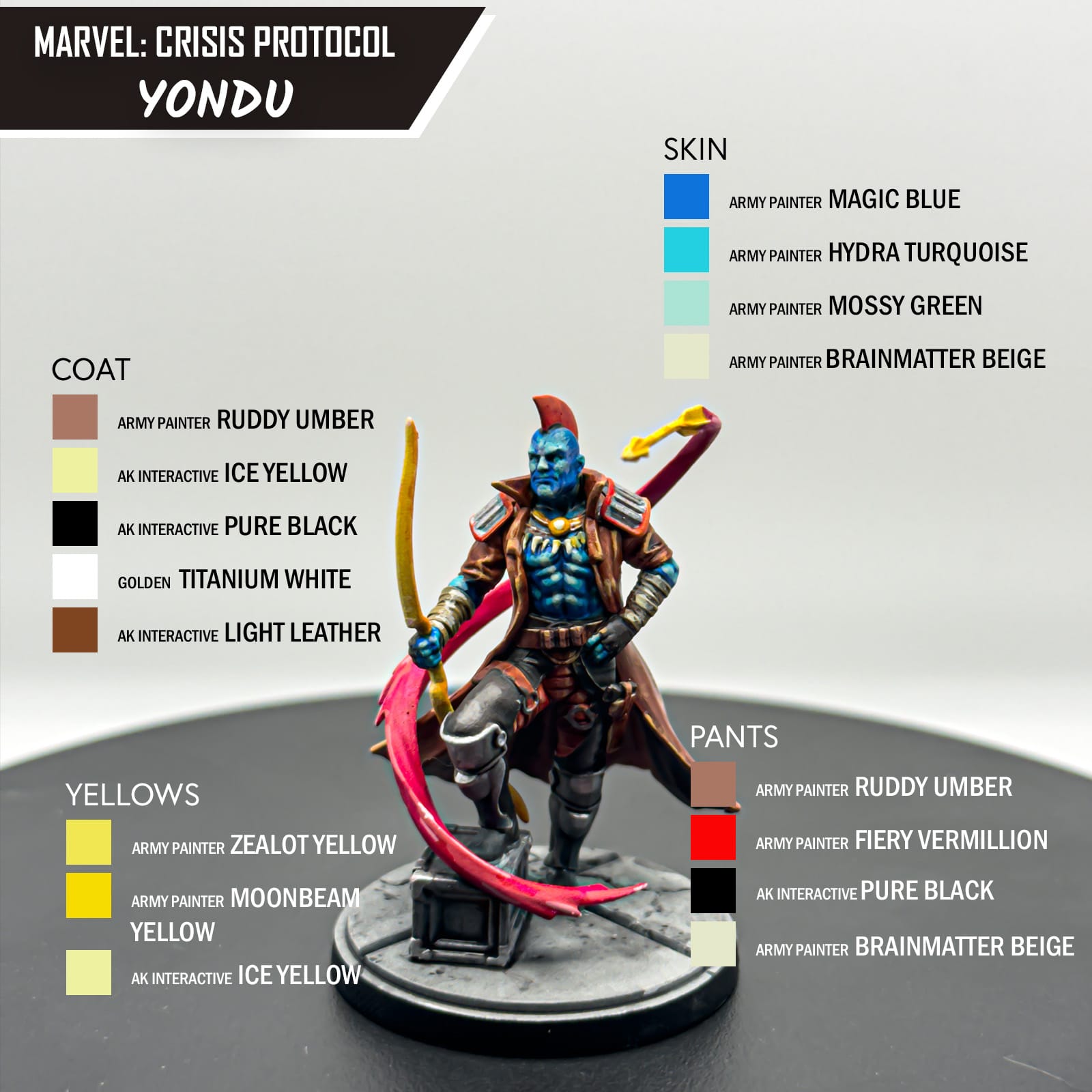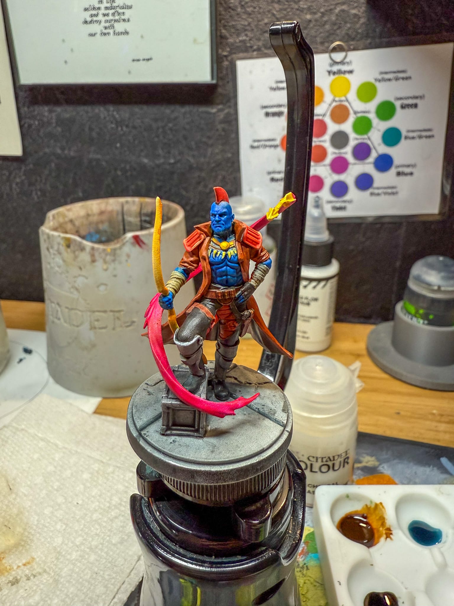 Randy: And for Yondu, I primarily used the Army Painter Fanatics line, along with some support from the AK Quick Gen, 3rd Gen, Citadel Contrast, and a hint of Army Painter Metallic Speedpaint. And I started with Army Painter Speedpaints, which was a first for me!