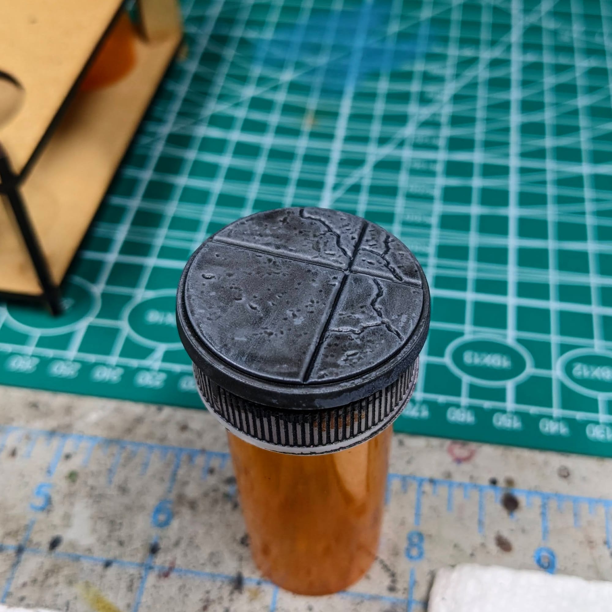 Randy: I will admit, I find the MCP bases to be a little boring at times, but I have a pretty standard recipe. Prime black, hit it with a drybrush of a few different grays (either cool or warm, go hog wild), and then use a wash to unify it. If you’re feeling spicy, use some pigments to add some dust. I use an AK Interactive Flat Black marker to paint the rim, as it’s EASY with a marker.