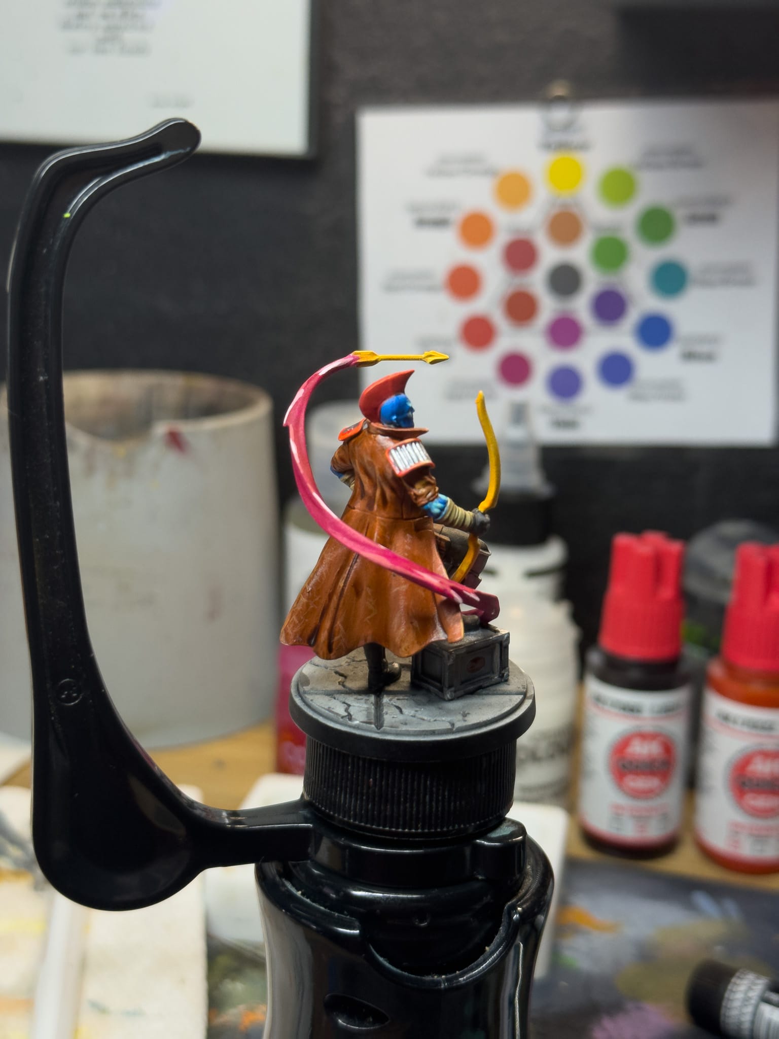 The energy swoop (yes, I’m calling it a swoop) was Doomfire Magenta from the Citadel Contrast range…I find it to be very pigmented, which helped. 2 passes, and I was set.