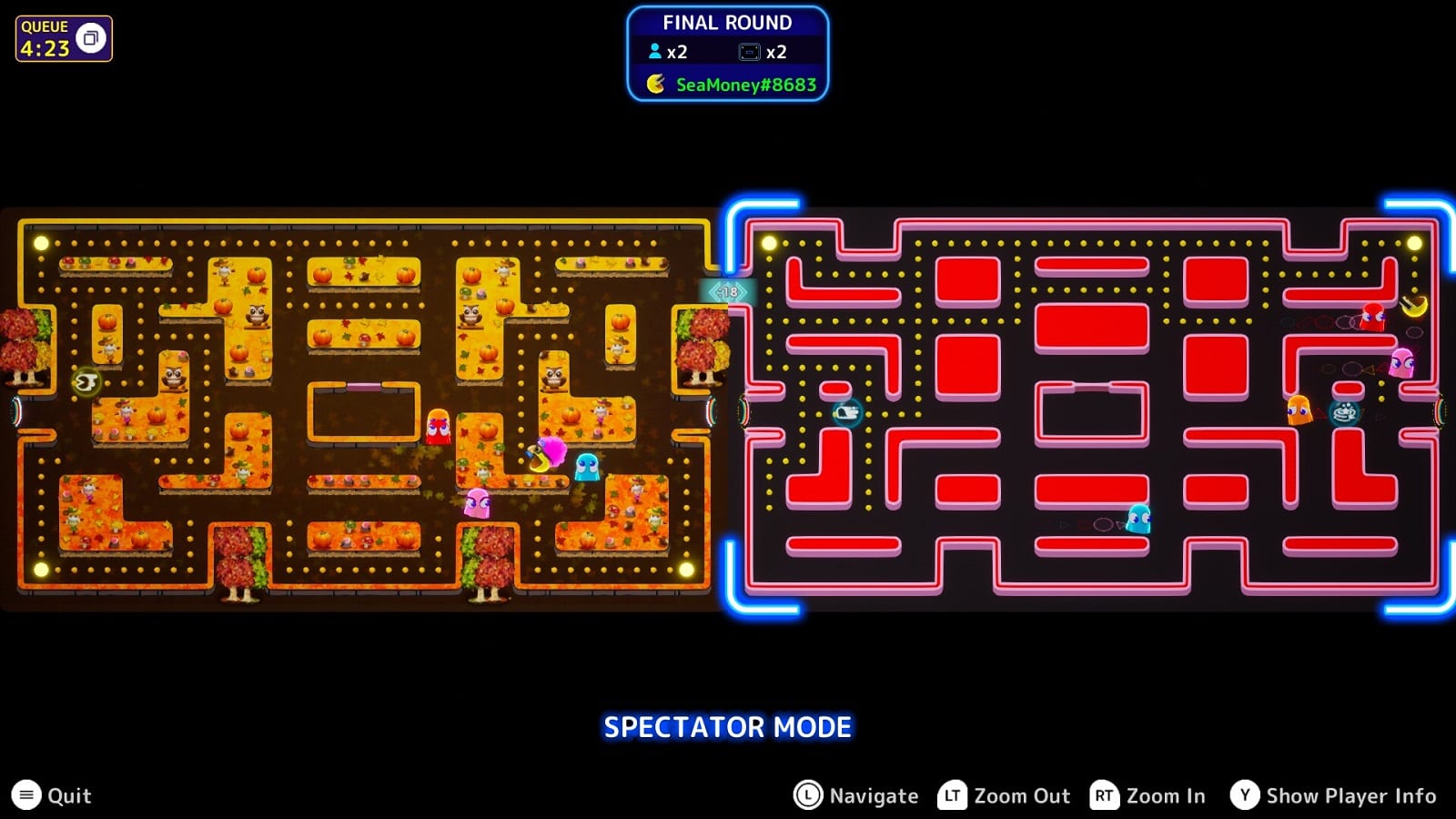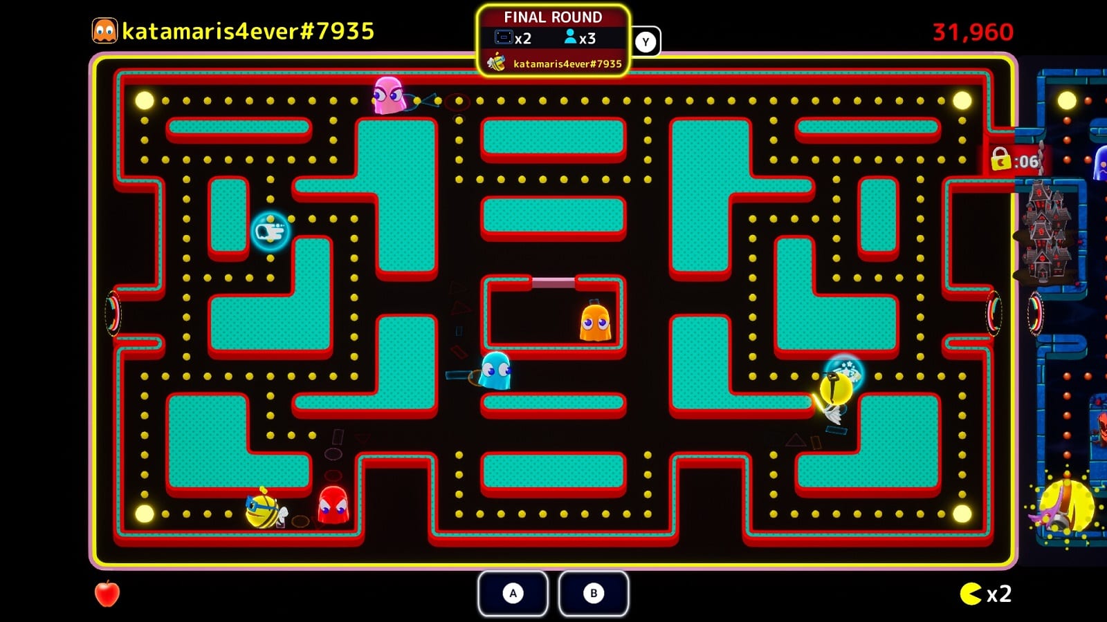 Pac-Man Mega Tunnel Battle is an innovative concept that unfortunately suffers from some technical jitters and quirkiness too. While the premise is interesting (it’s less intense but more interactively involved than Tetris 99, for sure), I wish there was a way to make player conflict more present in the main gameplay loop. I would regularly only see one, maybe two other Pac-Men in a given maze, which is great for playing mind games, but having four or five in one maze? That would be pure mayhem (which would be awesome considering the genre). You can actually make it through a game without seeing another soul in your maze, which again can bring Tetris 99 comparisons to the forefront. It takes a while to build up to the high-stakes gameplay, and I wish it happened sooner in the round.