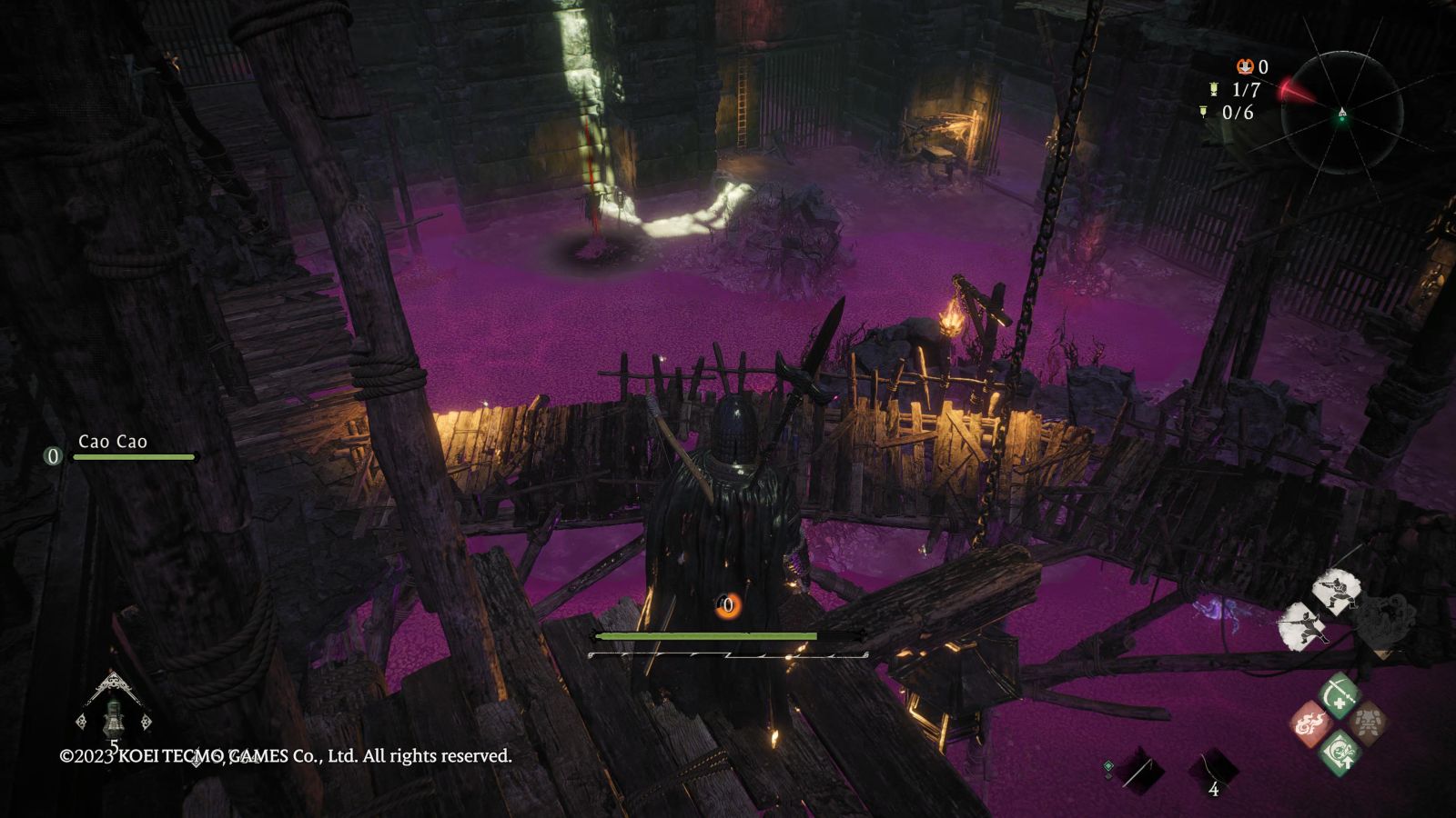Let’s start with explaining reinforcements. Much of the time in Wo Long you will fight alongside NPCs which will help guide you through a particular mission all the time offering up helpful plot tidbits or lore. After completing a mission and separating from the NPC, they are added to a list of reinforcements which you can call on to assist you with a mission. Each individual has an oath level, meaning their loyalty to you, which increases as you fight together. The higher their oath level, the better they fight, and eventually a high oath level will lead you to obtaining a copy of their unique equipment. Oath levels can also be raised by offering a cup of cordiality to each individual, though that item is hard to come by and must be used wisely.